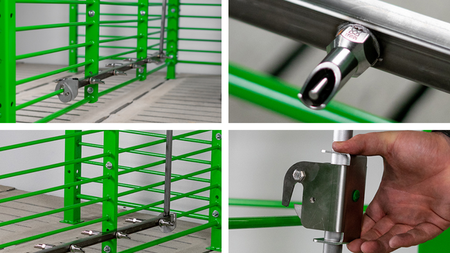La línea de agua y los herrajes de los Kits Serie-W4 están fabricados en acero inoxidable 304, lo cual garantiza una alta durabilidad en entornos de producción intensiva. La tubería está roscada en caliente para crear conexiones fuertes y duraderas con los insertos del bebedero, reduciendo así los costos de mantenimiento y prolongando la vida útil del sistema.