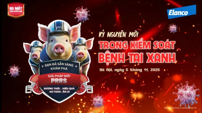 Elanco tự hào đồng hành cùng ngành chăn nuôi Việt Nam trong sứ mệnh kiểm soát bệnh Tai Xanh (PRRS), mang đến giải pháp tiên tiến giúp bảo vệ sức khỏe đàn heo, tối ưu năng suất và hướng đến chăn nuôi bền vững.Đừng bỏ lỡ cơ hội LIVESTREAM trực tiếp tại sự kiện: