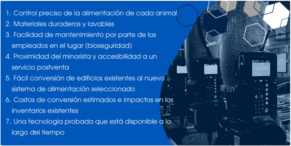 Además, el bienestar animal es un elemento importante a considerar en la lista. Según el Sr. Blouin, la alimentación en el piso o la alimentación con comederos de puntales fueron ciertamente las más inadecuadas, ya que al usar este tipo de sistema competitivo, las agresiones aumentan. Además, estos sistemas aumentan el desecho y la mortalidad, así como el nivel de estrés al momento de la alimentación.