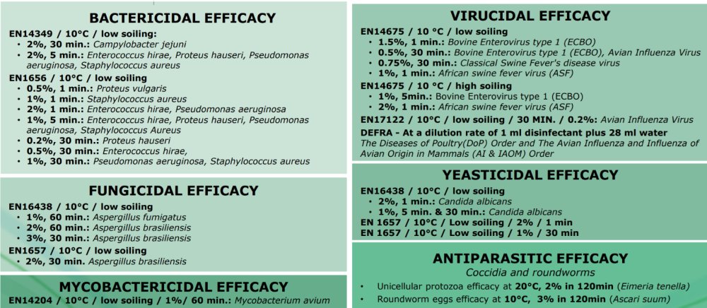• 2% battericida, levucida, virucida ≥ 5 min.