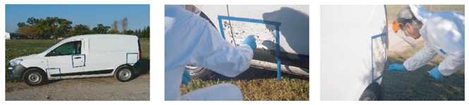 La raccolta di campioni della contaminazione presente sulla superficie del veicolo avviene tramite il passaggio di tamponi su 4 aree delimitate sulla carrozzeria.