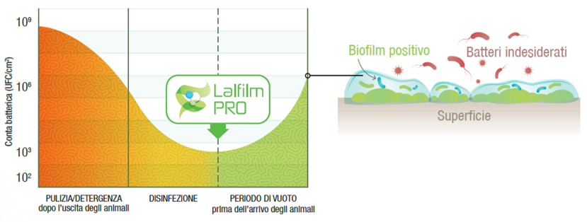 Lalfilm PRO è la soluzione che permette di costituire un biofilm positivo sulle superfici prima della ricolonizzazione da parte dei batteri indesiderati.
