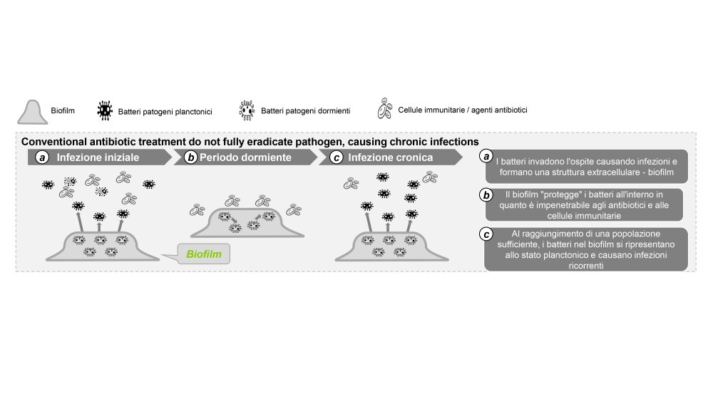 Come già accennato, è ampiamente riconosciuto che i batteri che vivono nei biofilm sono più resistenti agli stress meccanici, fisici e chimici. Di conseguenza si è pensato che poter intervenire sul meccanismo che porta alla formazione del biofilm, potesse costituire un efficace mezzo per contrastare le infezioni, laddove esse fossero sostenute da batteri noti per la loro capacità di formare biofilm in vitro (laboratorio) e con evidenze che questo fosse alla base anche dell’instaurarsi e/o del mantenimento dell’infezione in vivo (animale).