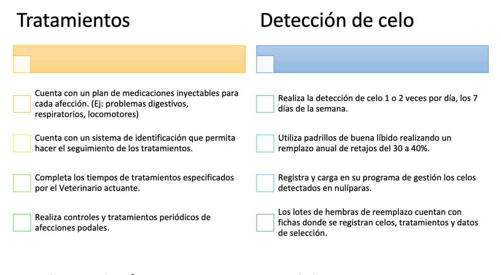 Debemos monitorear los resultados considerando a los sectores de futuras reproductoras, maternidad y gestación como un todo. Cuando el trabajo esté ajustado en todos los sectores lograremos alta productividad, estabilidad y longevidad. A continuación, se adjunta un check list de los indicadores básicos y sus objetivos: