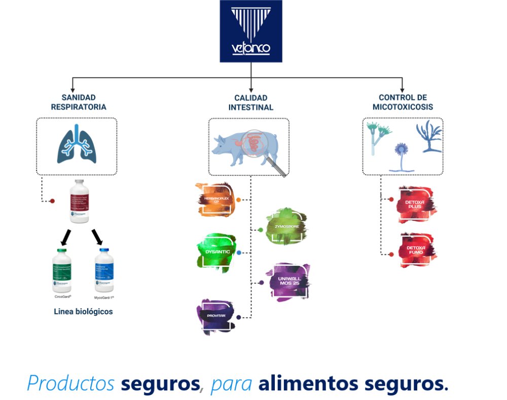 - Productos específicos para cada problema sanitario y etapa de producción.