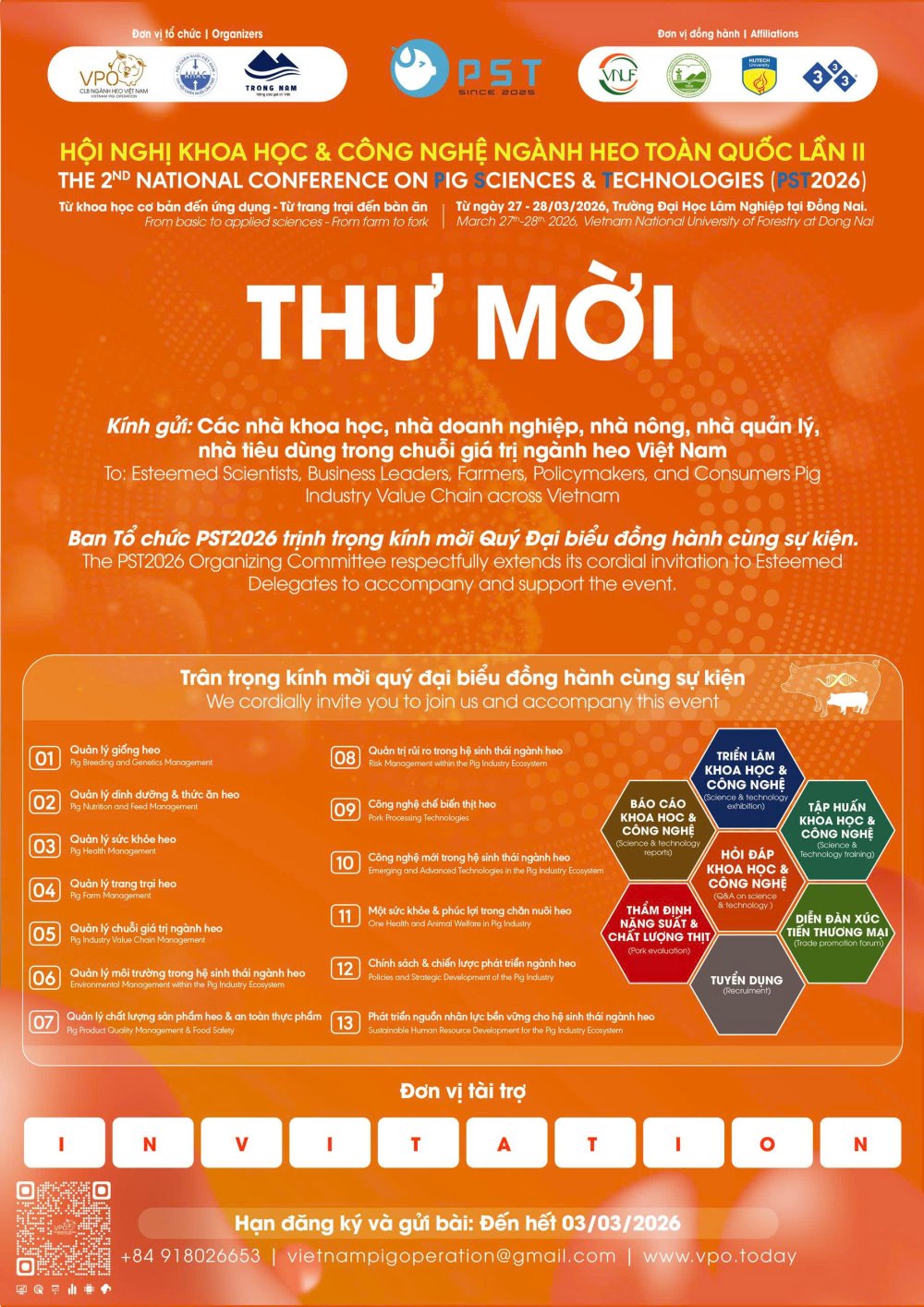 Thư mời: HỘI NGHỊ KHOA HỌC & CÔNG NGHỆ NGÀNH HEO TOÀN QUỐC LẦN II – PST2026