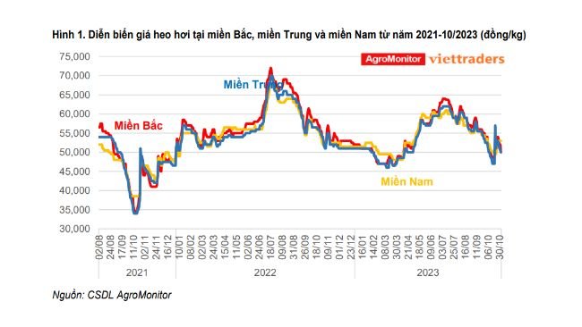 Xu hướng giá heo tiếp tục đà giảm trong tháng 10, đánh dấu ba tháng giảm liên tiếp xuống quanh mức 50.000 đồng/kg do lượng heo bán chạy dịch ra thị trường vẫn khá nhiều, cùng thêm áp lực tồn kho heo biểu to từ các công ty và sức tiêu thụ tại các chợ đầu mối/lò mổ yếu.
