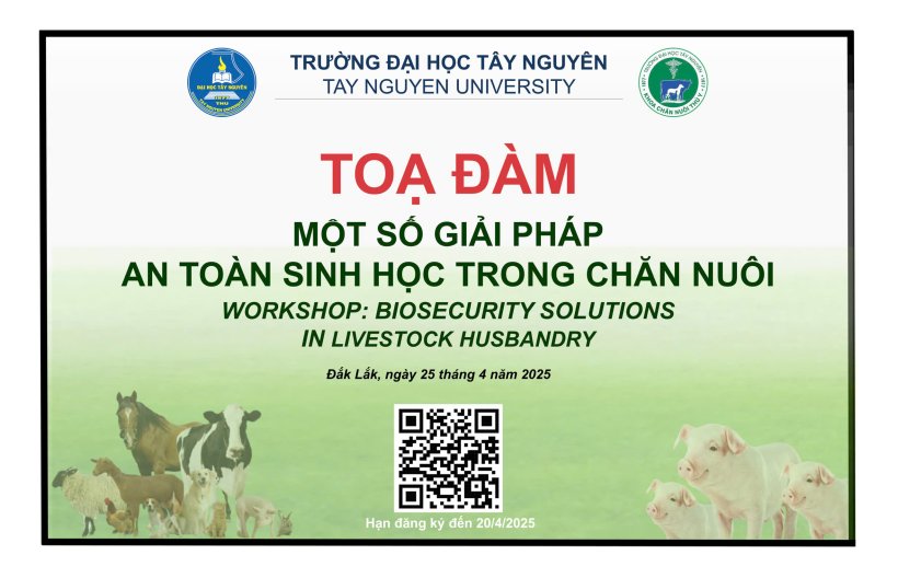 Trong bối cảnh đó, việc xây dựng và áp dụng các giải pháp an toàn sinh học không chỉ là yêu cầu cấp thiết mà còn là yếu tố then chốt giúp ngành chăn nuôi heo duy trì hiệu quả sản xuất và nâng cao năng lực cạnh tranh. Nhằm chia sẻ những kinh nghiệm thực tiễn, công nghệ tiên tiến và định hướng chiến lược trong lĩnh vực này, Trường Đại học Tây Nguyên phối hợp cùng các chuyên gia trong và ngoài nước tổ chức tọa đàm “Một số giải pháp An toàn sinh học trong chăn nuôi”.