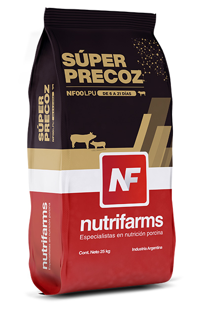 Desde Nutrifarms presentamos a NF00 Súper Precoz, un alimento completo desarrollado con la última tecnología en nutrición porcina que posibilita el manejo de una mayor cantidad de lechones al destete a partir de los 6 días de vida.