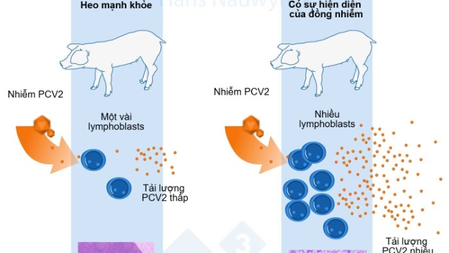 Tạo cơ hội cho kẻ thù: càng nhiều đồng nhiễm càng tạo ra nhiều tế bào lymphoblast, làm tăng khả năng nhân lên của PCV2